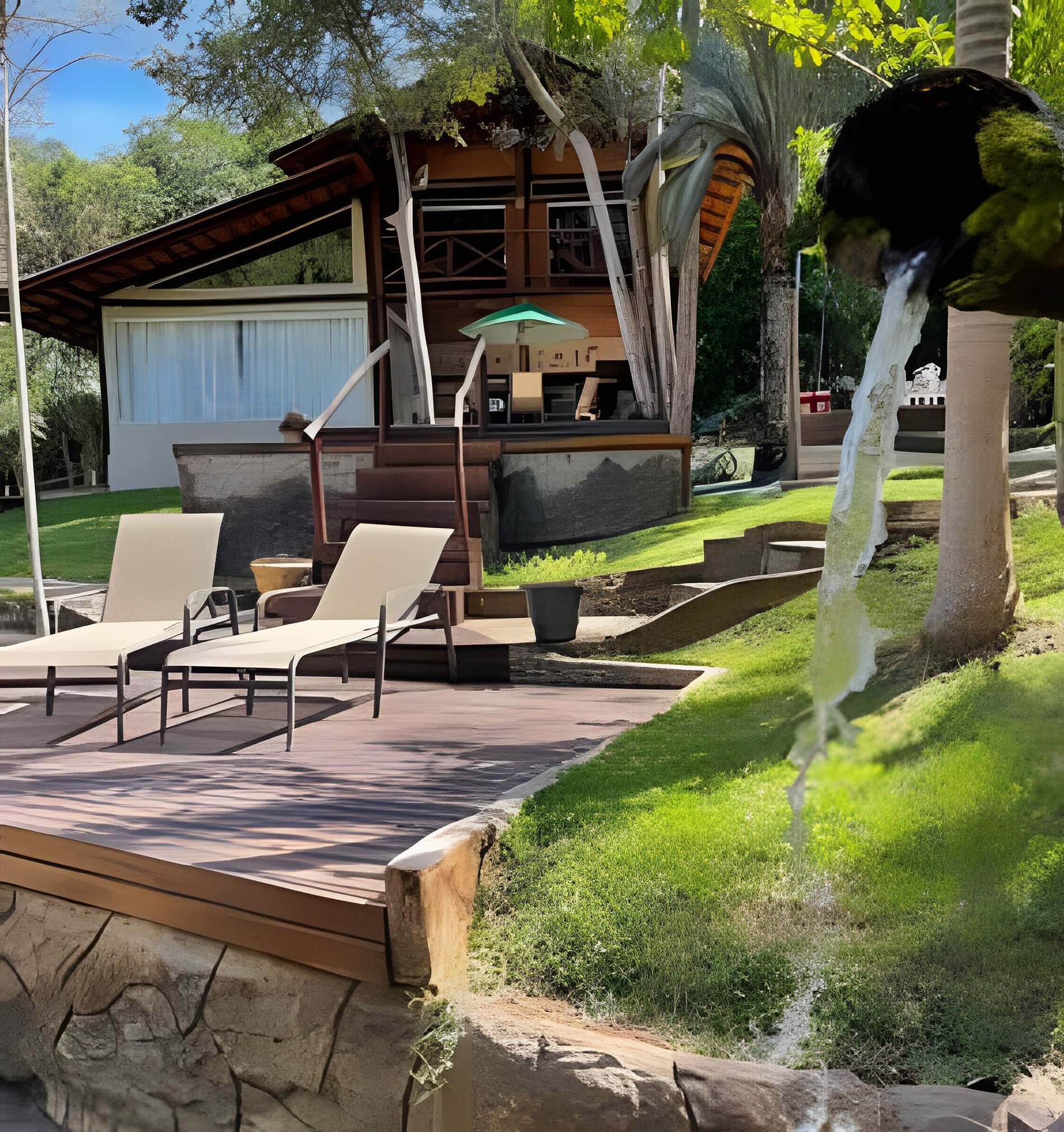 Ofurô em meio ao verde - Um dos grandes destaques é o ofurô externo — perfeito para relaxar depois de um dia de trilhas ou simplesmente curtir o silêncio da natureza.